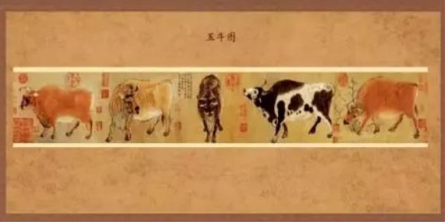 五牛图的寓意可以从多个方面来解读。首先,从传统农业社会角度来看,五牛图代表着对农业丰收和家族繁荣的祈愿。在古代中国,牛是农业生产的重要工具,对农民来说具有极高的价值。因此,这幅画被视为对农业生产和家族繁荣的象征。