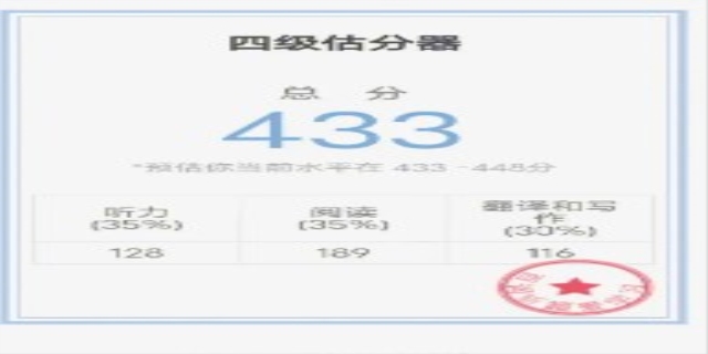 1、百词斩提供的四级估分器是一种便捷的工具,可以帮助学习者对自己的英语水平进行初步评估。该估分器基于大量的语料库和算法,能够根据用户所填写的信息,快速给出一个相对准确的四级水平分数。