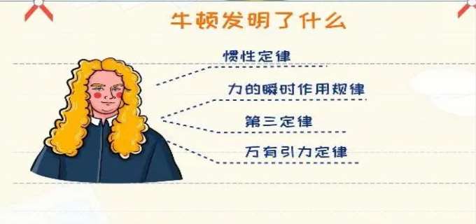 1.发现了万有引力定律:牛顿意外发现万有引力定律,即物体间的引力和它们之间的距离形成反比,并发现惯性定律,即物体在没有任何外力的作用时,会保持原有运动状态。